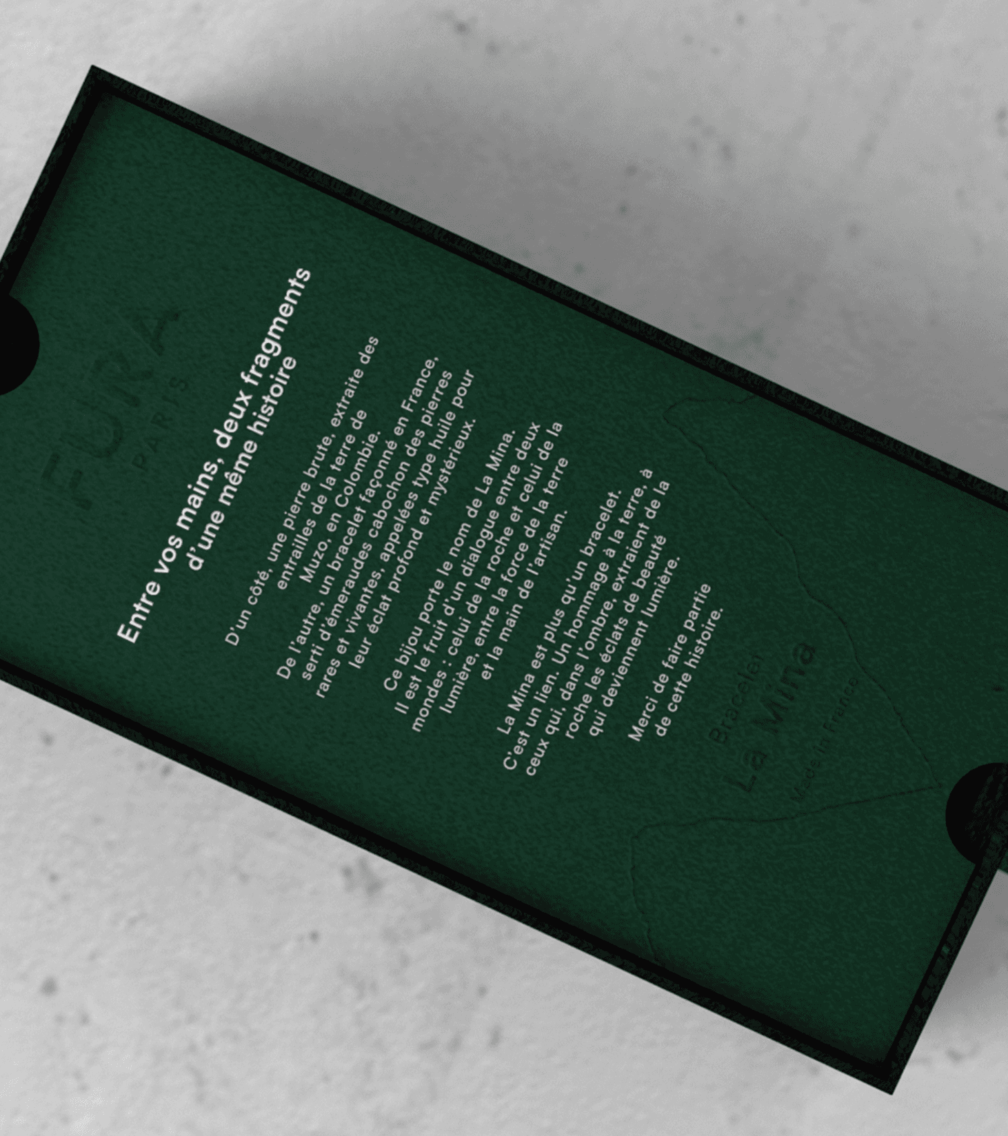 Fura est une marque de joaillerie masculine que j’ai commencée à développer il y a deux ans. Ce projet personnel est né de ma passion pour les émeraudes colombiennes et pour l’univers symbolique du bijou. En 2025, j’ai eu l’opportunité de faire évoluer cette idée dans une dimension plus artistique, en l’intégrant comme projet fil rouge de fin de master à l’ESP Paris. Fura est devenu un voyage intime et sensoriel vers mes origines, un dialogue entre le mysticisme colombien et le savoir-faire créatif français.
